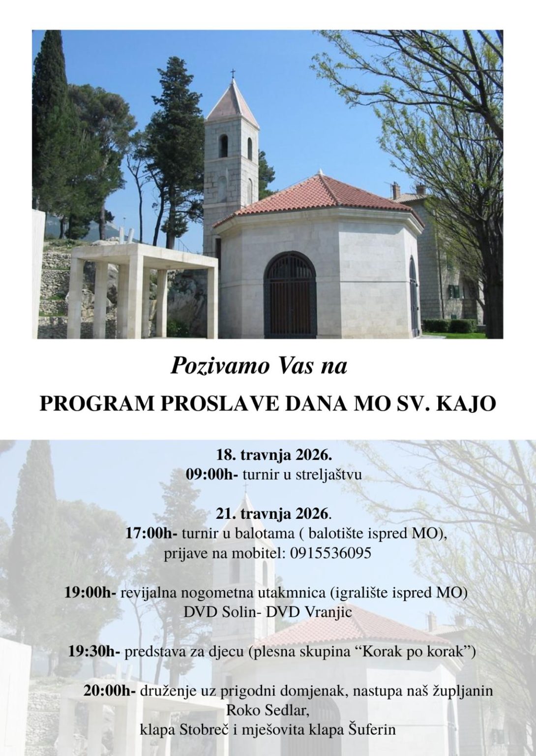 Pozivaju se građani da svojim dolaskom uveličaju ovu prigodu i zajednički obilježe Dan Mjesnog odbora Sv. Kajo.