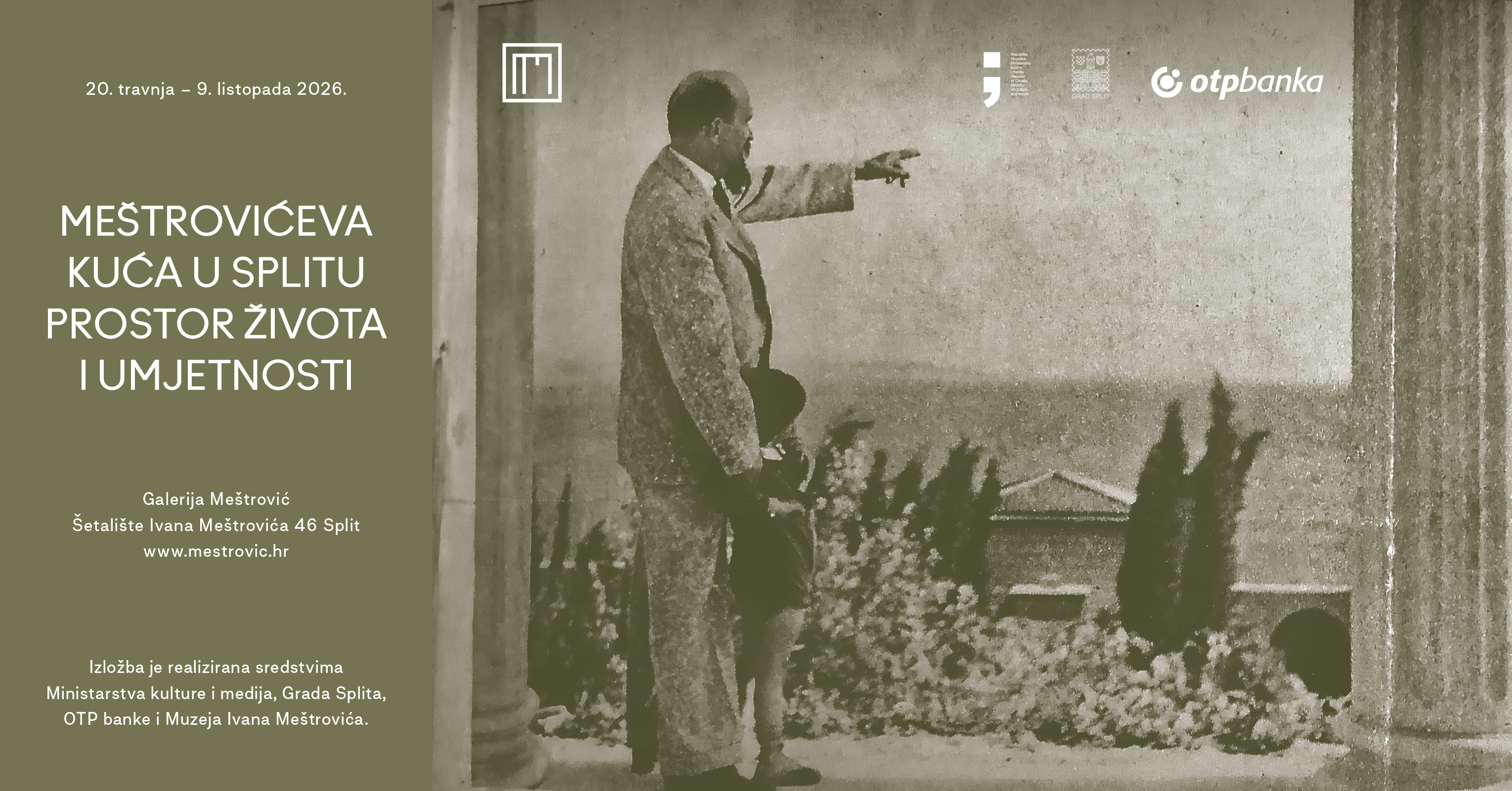 Obiteljsku vilu Meštrović započinje graditi 1931. godine, nakon što je prethodnih godina otkupljivao zemljišta na splitskim Mejama. Gradnja je trajala desetljeće, a obitelj je koristi od 1932. Vila je građena na način da lijevo i desno krilo budu u službi obiteljskog života i stvaranja, a središnji dio za izlaganje umjetnikovih djela. Svojom impresivnošću, smještajem na obroncima Marjana s pogledom na more, kaskadnim terenom, ogradnim zidovima te brončanim vratnicama iza kojih se prostire pogled na stepenište koje vodi do dojmljivog arhitektonskog zdanja izvedenog prema nacrtima samog Meštrovića ostavlja bez daha, kako onda, tako i danas. Iako obitelj u njoj nije boravila dulje od desetljeća, jer ih je prekinula tadašnja talijanska okupacija Splita te Meštrovićev odlazak, a potom i pritvaranje u ustaškom zatvoru u Zagrebu i odluka o napuštanju domovine, ona je simbol Meštrovićeve veze sa Splitom u kojem je započeo svoje školovanje i kojem se vraćao kad god je mogao. Osim toga, Galerija Meštrović – danas muzejska jedinica u sastavu Muzeja Ivana Meštrovića znak je Meštrovićeve ostavštine hrvatskom narodu kojem Darovnicom iz 1952. godine među ostalim daruje ovu nekretninu i 132 umjetnine. Iznimne vizije, i još vrijednije izvedbe arhitekture, hortikulture i umjetničkih djela koja se čuvaju u Galeriji Meštrović, Ivan Meštrović u Splitu ostavlja jedinstven spomenik kulture čija će vrijednost i važnost sada biti približena javnosti i ovom izložbom.
