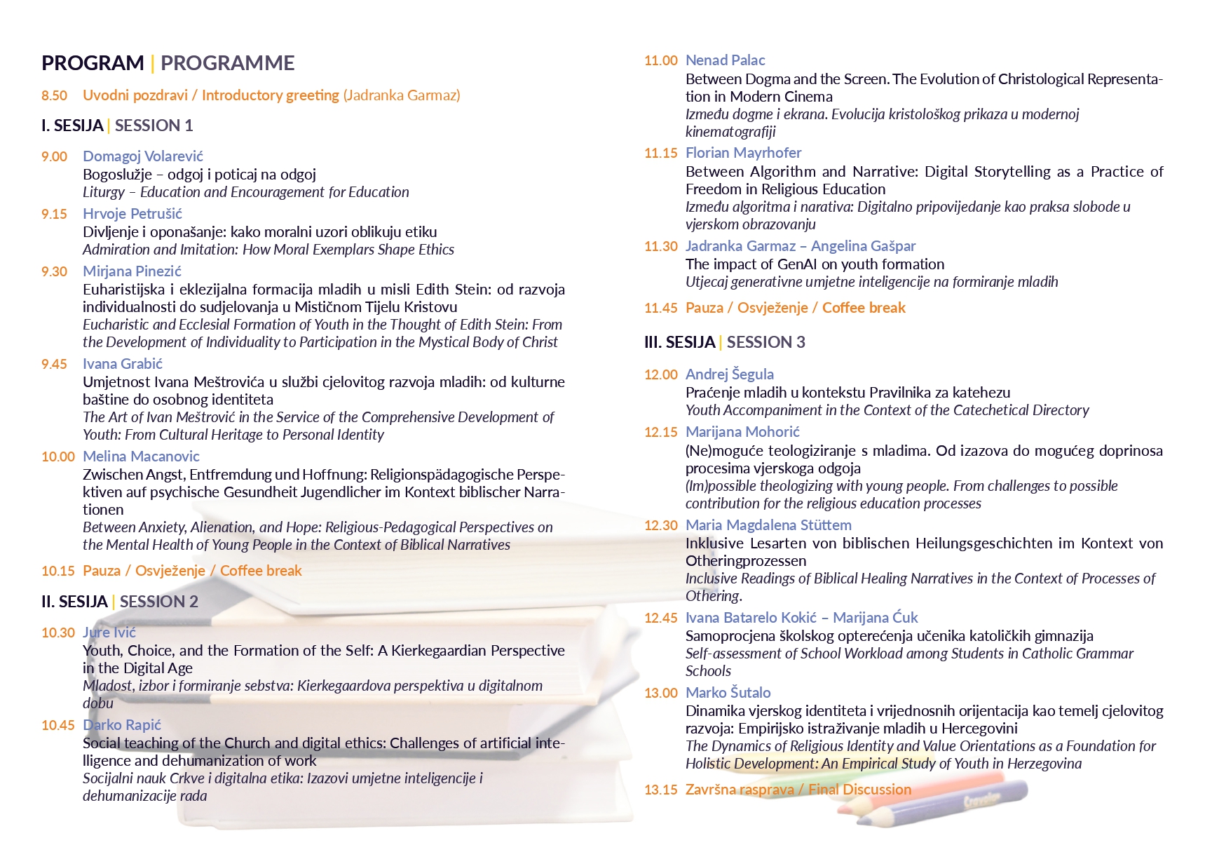 Simpozij se bavi i konkretnom stvarnošću te psihološkim blagostanjem učenika i studenata. Kroz prikaz empirijskih istraživanja o religioznosti i mentalnom zdravlju, skup nastoji detektirati izvore opterećenja i stresa u zahtjevnim obrazovnim sustavima. Cilj je ponuditi pastoralne i pedagoške smjernice koje će obrazovne institucije pretvoriti u prostore nade i solidarnosti, gdje se akademska izvrsnost ne postiže na štetu unutarnjeg mira, već kroz skladan razvoj duhovne, intelektualne i emocionalne inteligencije.