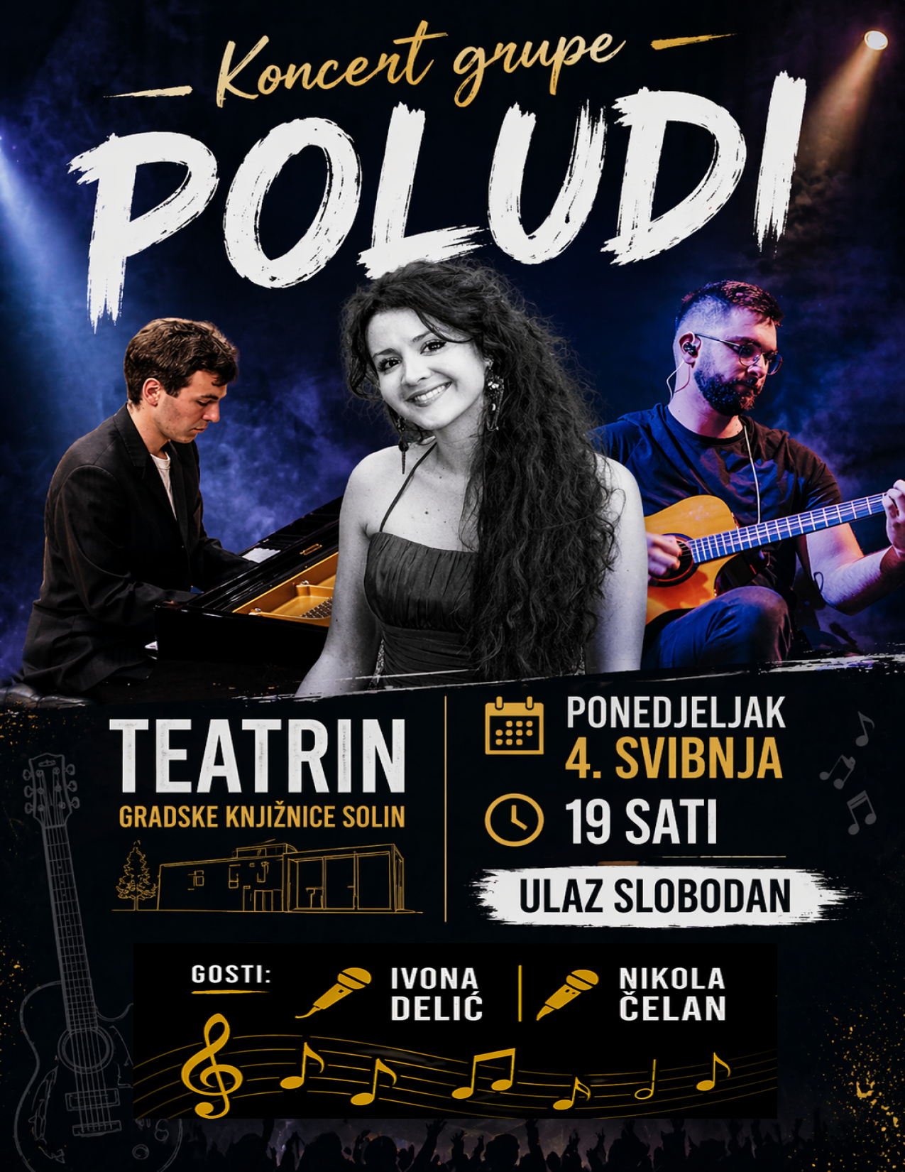 Grupa Poludi najavila je povratak na scenu tijekom 2026.g., a jedan od prvih koncerata koji se ne propušta stiže u Teatrin Gradske knjižnice Solin — u ponedjeljak, 4. svibnja u 19 sati!