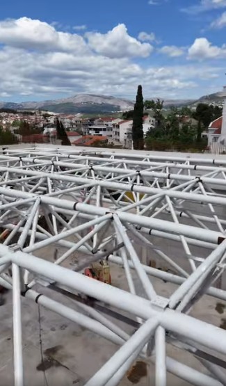 Nakon zahtjevne i precizne ugradnje svih elemenata, konstrukcija koja nosi budući krov dvorane sada je u potpunosti završena, čime su stvoreni uvjeti za nastavak radova na jednoj od ključnih faza izgradnje.